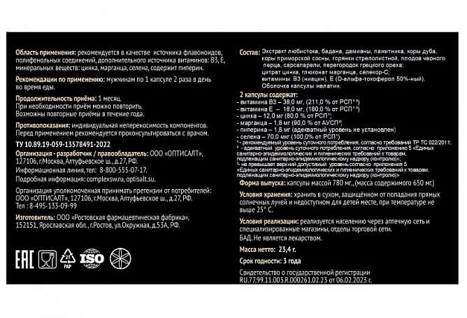 Комплекс экстрактов растений способствует поддержанию сексуального желания (либидо) и общего тонуса организма.