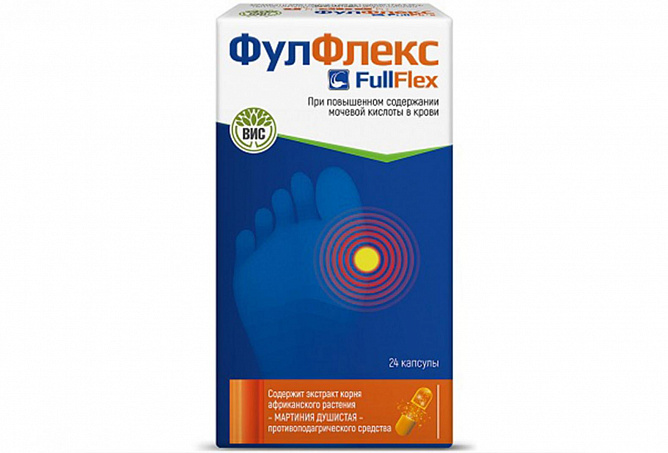 Капсулы «Фулфлекс» рекомендуются в качестве биологически активной добавки к пище – источника рутина, харпагозидов для лиц с повышенным содержанием мочевой кислоты в крови.