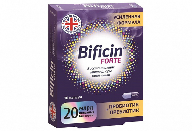 Синбиотик Bificin Forte способствует нормализации работы кишечника, восстановлению микрофлоры и повышению защитной функции иммунной системы.