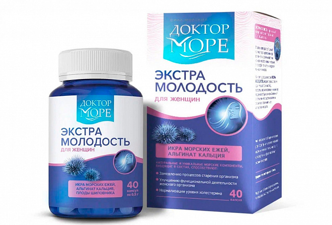 Доктор Море Экстра Молодость 40 шт. капсулы массой 500 мг –для естественного омоложения организма, созданная на основе икры морских ежей. Этот комплекс специально разработан для женщин, желающих замедлить процессы старения и сохранить молодость на клеточном уровне.