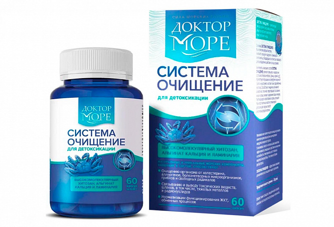 Доктор море система очищение 60 шт. капсулы – эффективный детокс-комплекс на основе морских компонентов с клинически доказанным действием. В составе – альгинат кальция, хитозан из камчатского краба и ламинария, которые мягко выводят токсины, тяжелые металлы и аллергены, не нарушая микрофлору кишечника. Формула обеспечивает тройное действие: очищает ЖКТ без слабительного эффекта, выводит накопленные шлаки и защищает от новых токсинов. Регулярный прием нормализует пищеварение, уменьшает аллергические проявления, способствует нормализации веса и укрепляет иммунитет. Принимайте по 2 капсулы 2 раза в день во время еды. После первого применения вы ощутите легкость, прилив энергии и улучшение состояния кожи. В упаковке 60 капсул – этого достаточно для полноценного очищающего курса, который подарит вам ощущение легкости, улучшение пищеварения и укрепление.
