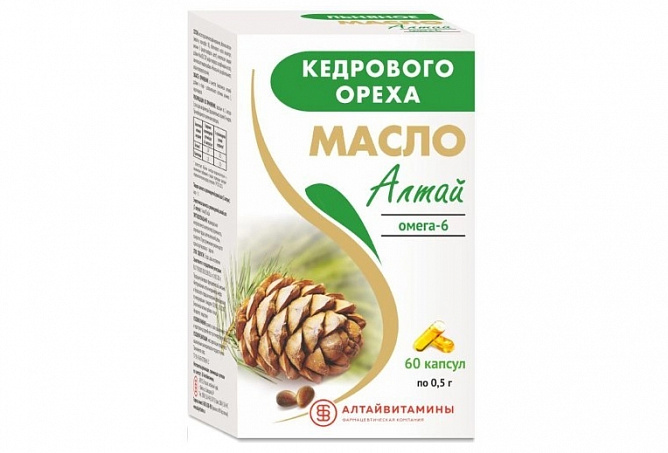 Масло кедрового ореха Алтай, капсулы - это биологически активная добавка (БАД) к пище. В составе БАД «Масло кедрового ореха «Алтай» особую ценность представляют незаменимые ПНЖК Омега-6.