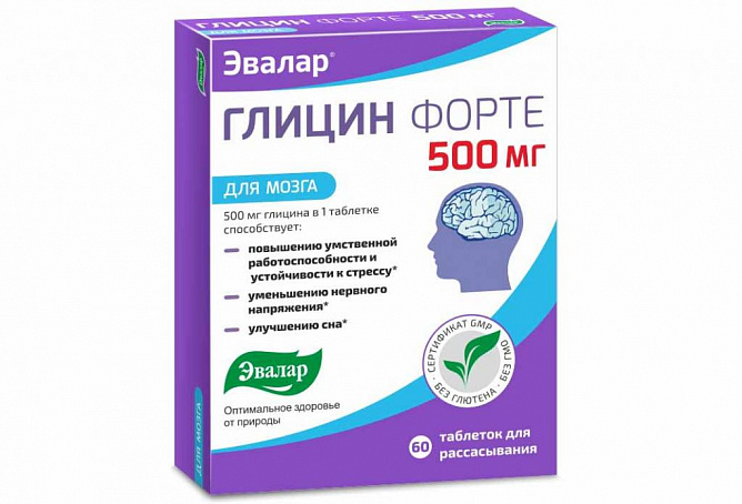 Глицин форте Эвалар 500 мг таб д/расс 0,58г N60 БАД