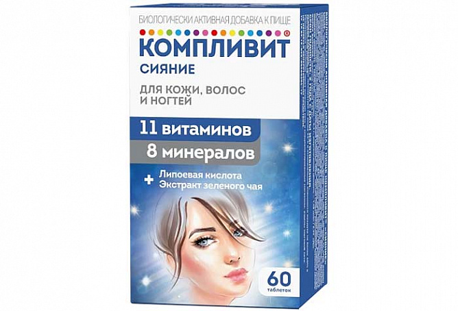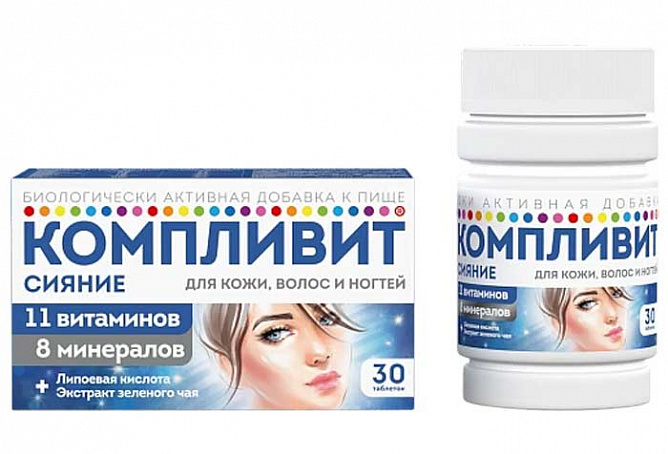 Комплекс содержит 11 витаминов, 8 минералов, экстракт зеленого чая, липоевую кислоту. Совместимость компонентов в одной таблетке обеспечена специальной технологией. Комбинация витаминов, минералов и витаминоподобных веществ, входящих в состав КОМПЛИВИТа® СИЯНИЕ, обеспечивает следующие эффекты (по литературным данным):