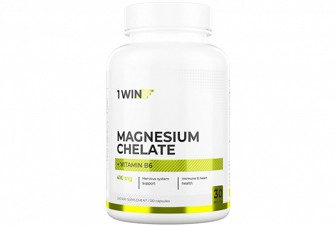 Магний Бисглицинат (Хелат) + Витамин В6 от 1WIN — это комплекс-антистресс, который поможет повысить работоспособность и стрессоустойчивость. Биодоступная хелатная форма глицинат магния целенаправленно влияет на работу нервной системы. В 1 порции (4 капсулы) содержится чистый магний (416 мг), витамин в6 (6 мг).