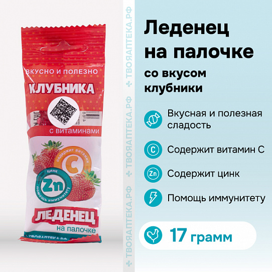 Карамель Петушок леденцовая Цинк и Витамин С клубника 17 г БАД