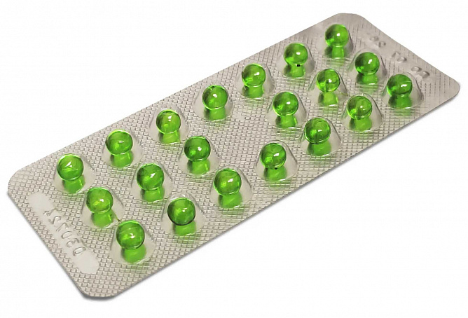 Мягкие желатиновые капсулы по 0,05 г, 20 штук в контурной ячейковой упаковке.