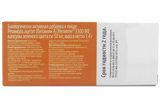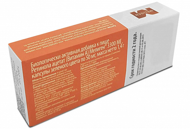 Ретинола ацетат (Вит.А) 3300МЕ капсулы N20 БАД