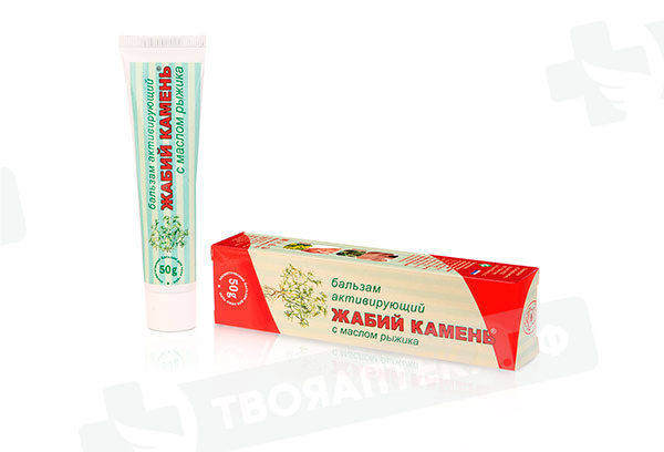Жабий камень бальзам активирующий для тела с маслом рыжика, 50 г Бальзам Жабий камень с маслом рыжика создан на основе специально подобранных экстрактов растений, используемых в гомеопатии и народной медицине для оздоровления и укрепления суставных и мышечных тканей. Основным компонентом бальзама является экстракт плода жабника. Натуральный бальзам Жабий камень Он содержит камедь, в состав которой входит ценнейший компонент - кальциевая соль арабиковой кислоты - мощный активатор кальциево-фосфорного обмена и регулятор проницаемости тканей. Масляный экстракт рыжика (масличное растение), входящий в состав бальзама, содержит рекордное количества витамина Е, а так же витамины А, Д, К, что способствует ускорению процессов регулирования углеводного обмена и энергетического питания, и восстановления клеток в суставных и мышечных тканях.