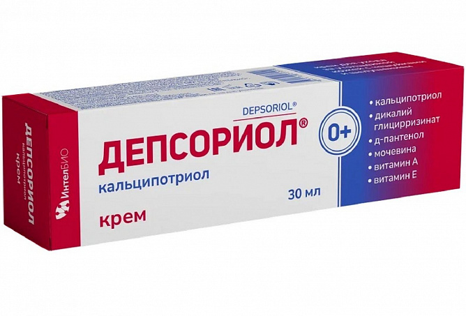Крем Депсориол создан на основе известного средства кальципотриол (аналог активного метаболита витамина D3), служащего для всех видов кожи с различными проблемами утолщения, сухости и шелушения на всех участках кожи (в т.ч. кожа головы, локти, ступни).