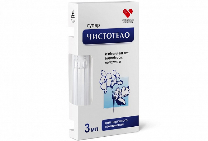 СУПЕРЧИСТОТЕЛО ТМ ДОМАШНЯЯ АПТЕЧКА - средство для удаления избыточно ороговевших участков кожи (бородавки, паплломы) - специальный лосьон косметический для удаление ороговевших участков. Для быстрого удаления бородавок и папиллом в комфортных домашних условиях создано средство «Суперчистотело», обладающее местным отшелушивающим действием.