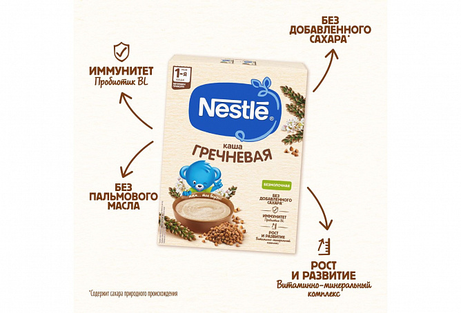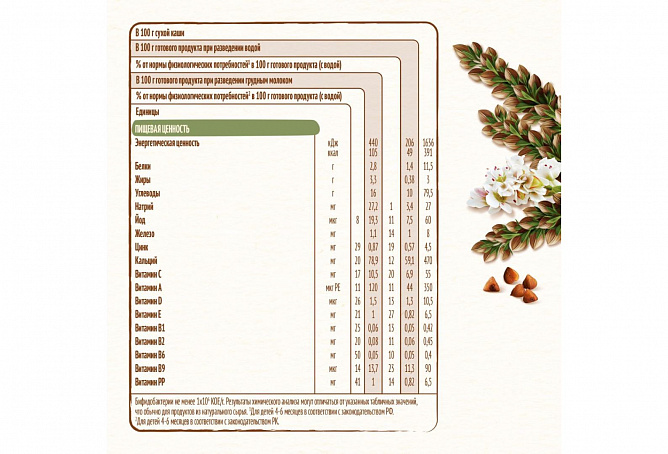 В каждой порции содержится комплекс витаминов и минеральных веществ для здорового роста и развития. Каша не содержит добавленного сахара, что способствует формированию правильных привычек питания и заботе о здоровье малыша с раннего возраста. Без пальмового масла.