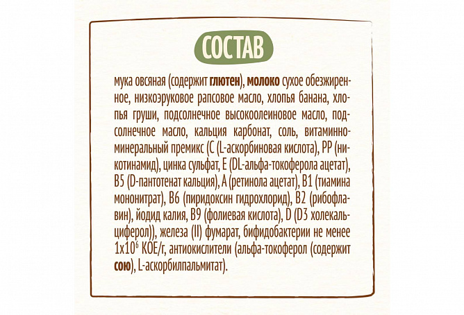 Каша не содержит добавленного сахара, что способствует формированию правильных привычек питания и заботе о здоровье малыша с раннего возраста. Приятный вкус злаков и фруктов порадует вашего малыша. Без пальмового масла.