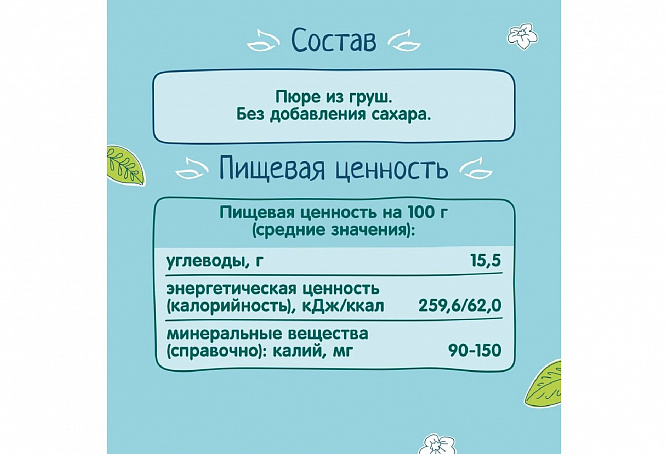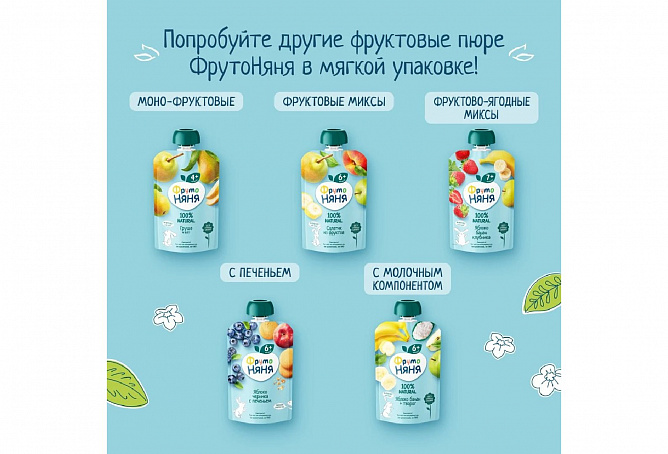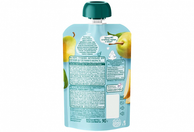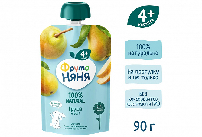 Фруктовое пюре «ФрутоНяня» из груш в мягкой упаковке — это вкусный и полезный перекус, который удобно брать с собой, а яркая мягкая упаковка привлечет внимание вашего малыша и позволит ему есть самостоятельно. Отборные груши обеспечат организм вашего малыша природной пользой и энергией для гармоничного роста!