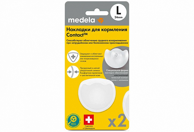 Накладки для кормления Medela Contact облегчают грудное вскармливание при затрудненном или болезненном захвате груди, защищая воспаленные соски и помогая малышу захватывать грудь.