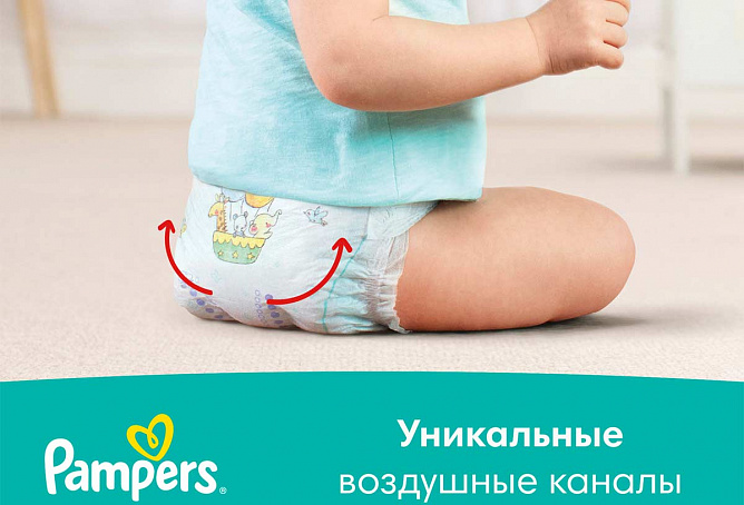 Благодаря циркуляции воздуха внутри подгузника кожа малыша остается сухой и защищенной от опрелостей, а дополнительный внутренний слой с жемчужными микрогранулами впитывает и надежно удерживает влагу, обеспечивая сухость до 12 часов. Уникальные воздушные каналы подарят коже малыша сухость на всю ночь, а забавные рисунки на внешней стороне помогут сделать процесс смены подгузника легким и веселым — как для малыша, так и для мамы.