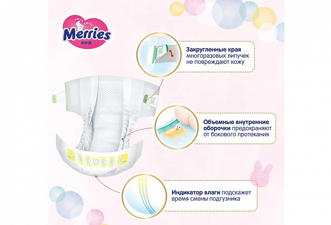 Симпатичный дизайн с зайкой Merries подарит малышу хорошее настроение.