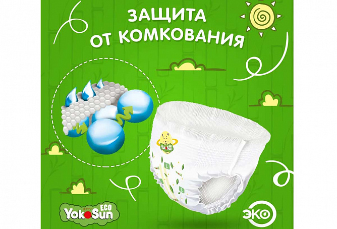 Трусики-подгузники YokoSun Eco – это новая серия трусиков-подгузников торговой марки YokoSun. Отвечает всем требованиям современных мам, имеет знак качества экологичности «Эко» и рекомендована дерматологами.