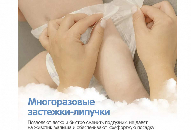 Новый дышащий нижний слой. Моментально распределяет влагу внутри и не дает ей слеживаться, защищает нежную кожу малыша от сыпи, оставляя ее сухой и чистой.