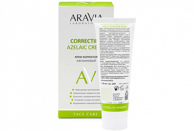 Крем с азелаиновой кислотой (5%) помогает коже справиться с недостатками и улучшить ее состояние и внешний вид. Азелаиновая кислота оказывает мощное противовоспалительное и себорегулирующее действие, борется с акне и черными точками. Нормализует процессы регенерации клеток, выравнивает и разглаживает поверхность кожи. Обладает осветляющим эффектом, помогает минимизировать следы постакне, устраняет пигментацию и покраснения. В результате курсового использования позволяет забыть про неровный тон и тусклость кожи.