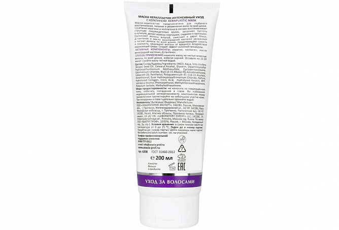 Биоактивный состав: коллаген, кератин, масло виноградной косточки, Д-пантенол.