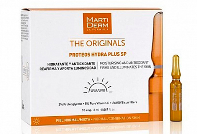 Martiderm The Originals Proteos Hydra Plus SP-это легкая сыворотка виндивидуальных ампулах, которая мгновенно увлажняет кожу и делает ее ярче стечением времени.