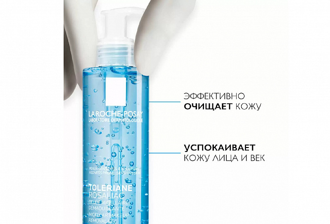 ОЧИЩАЮЩИЙ МИЦЕЛЛЯРНЫЙ ГЕЛЬ TOLERIANE ROSALIAC на основе термальной воды La Roche - Posay бережно очищает и успокаивает чувствительную кожу, склонную к покраснениям. Мягкий ультраосвежающий гель придаёт коже лица и век гладкость и чувство комфорта.