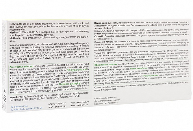 Интенсивно питает клетки, стимулирует образование новых коллагеновых и эластиновых волокон. Идеально сочетается с другими продуктами Teana, усиливая проникновение активных веществ в глубокие слои кожи. Ежедневное использование средства обеспечивает длительное увлажнение и активирует собственные защитные свойства кожи. Восстанавливается каркас и плотность кожи, подтягивается овал лица.