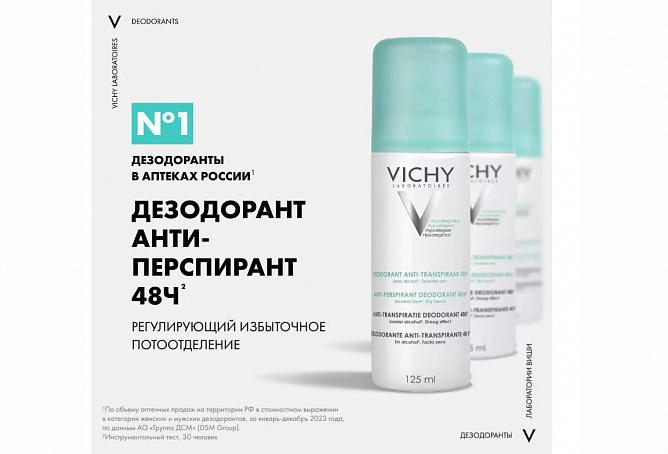 Регулирует избыточное потоотделение на протяжении 48 часов.