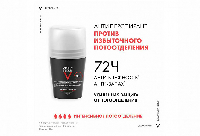 Защищает от избыточного потоотделения на протяжении 72 часов.
