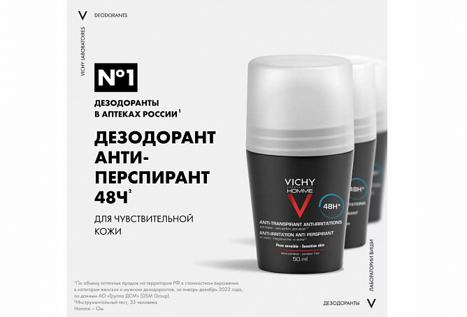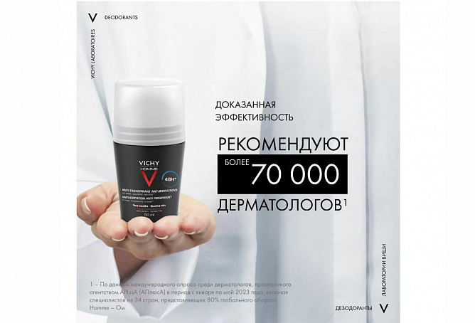 Дезодорант для мужчин, замедляет потоотделение на протяжении 48 часов и уменьшает повышенную чувствительность кожи, устраняет запах пота и возвращает коже чувство свежести. Устраняет раздражение и смягчает кожу.