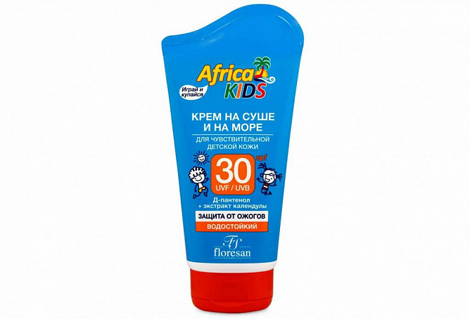 Нежный крем серии «Africa kids» создан специально для сверхчувствительной к солнцу детской кожи при нахождении, как на суше, так и в воде. Комплекс УФ-А и УФ-B фильтров, Д-пантенол и календула максимально эффективно защищают кожу от вредного воздействия ультрафиолетовых лучей и предохраняют кожу от появления солнечных ожогов. Водостойкая формула обеспечивает защиту кожи на длительный срок во время пребывания на солнце и после водных процедур. Устойчив к песку и поту.