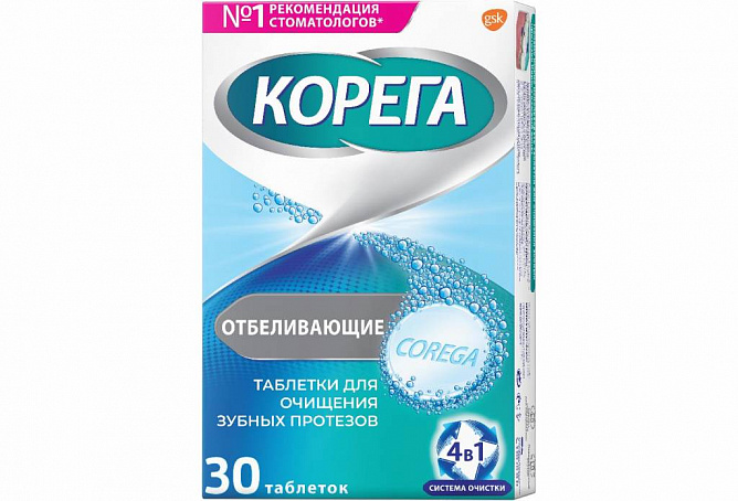 Таблетки Корега подходят тем, кто стремится к глубокому очищению съемных зубных протезов. Таблетки для очищения зубных протезов Корега Отбеливающие обеспечивают бережное и эффективное очищение зубных протезов.
