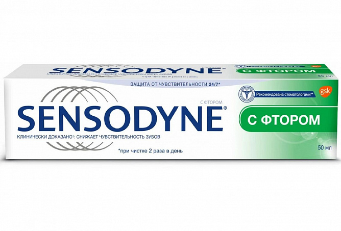 Sensodyne - бренд №1 по рекомендации* стоматологов для чувствительных зубов. Зубная паста для чувствительных зубов Сенсодин С фтором обладает всеми преимуществами гигиены полости рта, которые вам необходимы: