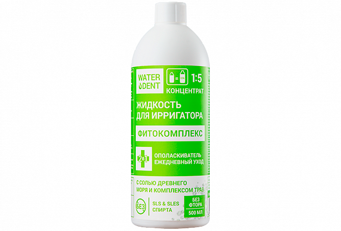 Вотердент (Waterdent) жидкость для ирригатора + ополаскиватель Фитокомплекс без фтора 500 мл