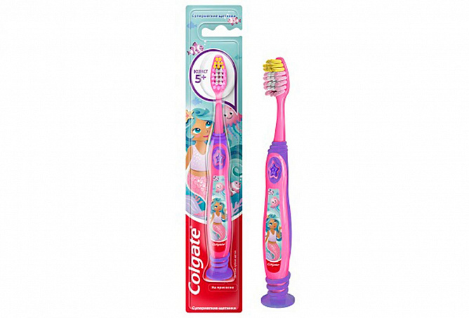Детская зубная щетка COLGATEBarbie,Batmanдля детей старше 5 лет,супермягкая, предназначена для тех, у кого еще есть молочные и уже появились постоянные зубки.