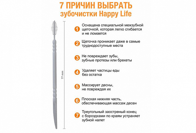 1 сторона со щеткой для бережной чистки межзубного пространства (межзубный ершик), другая для удаления зубного налета