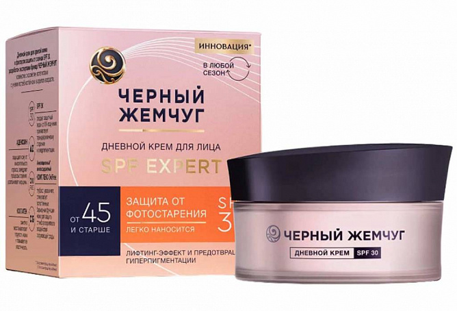 Дневной крем для лица Черный Жемчуг SPF 30 соответствует основным потребностям зрелой кожи. Инновационная* формула разработана для активной защиты лица от фотостарения, подходит для кожи любого типа, включая чувствительную. Солнцезащитные фильтры в составе препятствуют негативному влиянию ультрафиолетовых лучей, которые способны проникать сквозь облака.
