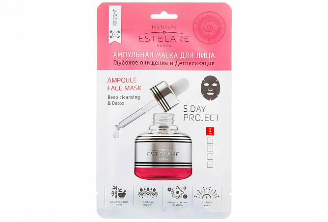 Ампульная маска с бамбуковым углем, гиалуроновой кислотой и комплексом из 9 натуральных экстрактов обеспечивает интенсивное очищение кожи лица, оказывая действие как на поверхности кожи, так и в глубоких ее слоях. Бамбуковый уголь нормализует работу сальных желез, замедляет окислительные процессы, которые являются основной причиной старения кожи. Входящий в состав бифида фермент уменьшает воспалительные реакции в коже, защищает клетки от агрессивного воздействия внешних факторов, стимулирует выработку церамидов. Активные компоненты маски выводят токсины, заменяя их необходимыми коже микроэлементами, действуют как концентрат сияния, благодаря чему кожа выглядит более ровной и гладкой, приобретает приятное фарфоровое свечение.
