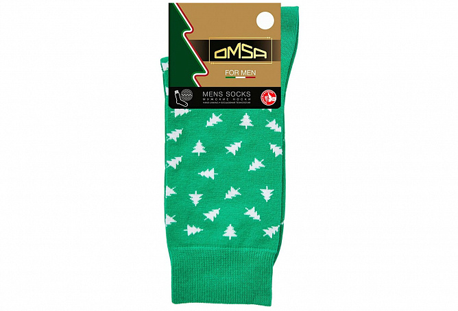 Мужские новогодние носки OMSA с праздничным рисунком. Высококачественный хлопок в составе отличается мягкостью, воздухопроницаемостью и идеально подходит даже для самой чувствительной кожи. Удобная резинка обеспечивает идеальное облегание, а кеттельный (плоский) шов на мыске создает дополнительный комфорт.