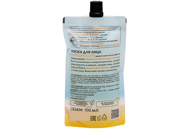 Благодаря технологии био-ферментации кокосовое молоко обогащается дополнительными полезными свойствами и превращается в ценный КОКОСОВЫЙ ЙОГУРТ, который:- Содержит в 2 раза больше витаминов А, Е, С, К и группы В- Обогащен максимальной концентрацией минералов и аминокислот- Оказывает глубокое увлажнение и питаниеМаска для лица Очищающая удивит уже после первого использования. Органический экстракт кумквата богат витаминами и микроэлементами, придает коже упругость и мягкость, очищает поры, устраняя жирный блеск. Кокосовый йогурт увлажняет и питает кожу. Ваша кожа чистая и ухоженная!