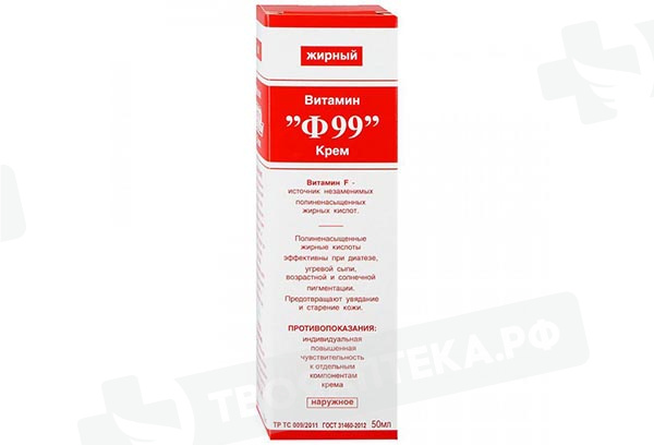 Витамин Ф99 в виде жирного крема эффективная помощь при различного рода кожных раздражениях.