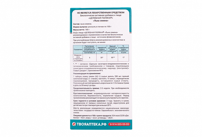 БАД к пище «Льна семена» рекомендована к применению в качестве биологически активной добавки к пище – источника флаволигнанов.