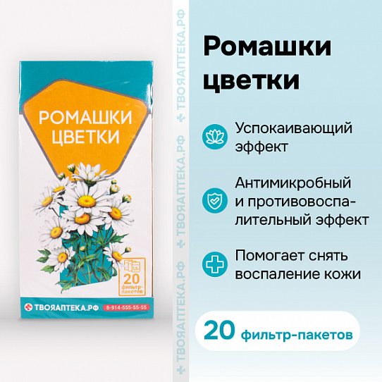 БАД к пище «Ромашки цветки» рекомендована к применению в качестве биологически активной добавки к пище – источника флавоноидов, содержащей эфирное масло.