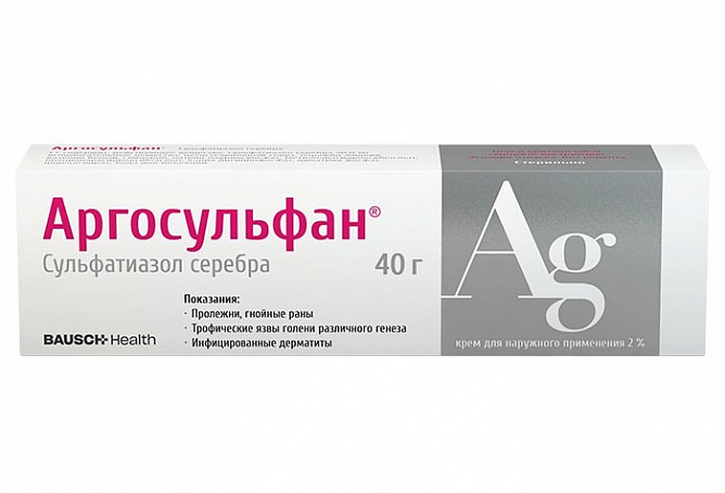 Аргосульфан 2% крем 15 гр. - это лекарственный препарат, обладающий противомикробным и противовоспалительным действием. Крем используется для лечения и профилактики инфицированных ран, ожогов 1-2 степеней, трофических язв и других кожных заболеваний с инфицированным компонентом.