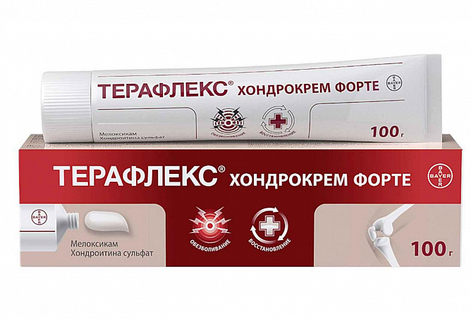 ТерафлексХондрокрем Форте обладает комбинированным действием: замедляет прогрессирование остеоартроза и остеохондроза, оказывает обезболивающее действие, способствует увеличению объема движения суставов (в области нанесения крема), обладает противовоспалительным действием, уменьшает припухлость суставов.