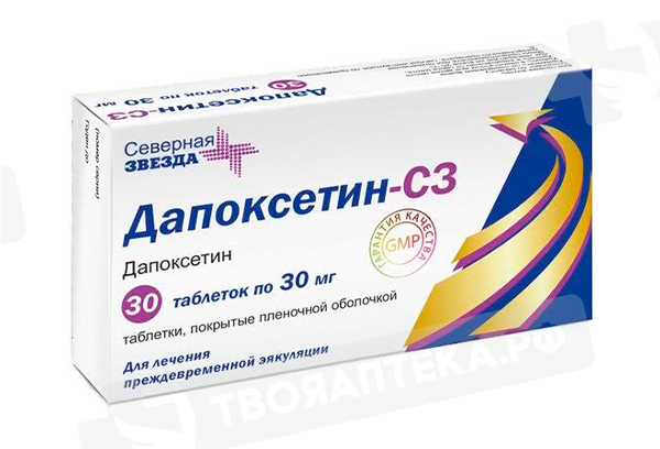 Дапоксетин-СЗ 30 мг таблетки покрытые пленочной оболочкой N30