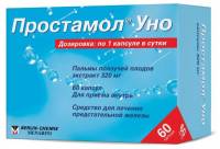 Экстракт плодов пальмы ползучей (Serenoa repens) оказывает антипролиферативный антиандрогенный, противовоспалительный и противоотечный эффекты, которые избирательно проявляются на уровне предстательной железы. При этом препарат не оказывает влияния на уровень половых гормонов в плазме крови, не влияет на потенцию и либидо и не изменяет уровень простатоспецифического антигена в плазме крови. Местное антипролиферативное действие препарата проявляется снижением активности факторов роста (прежде всего эпидермального и фибробластического), торможением связывания рецепторов пролактина с последующим нарушением процессов передачи сигнала в клетки простаты и ускорением процессов апоптоза клеток простаты, что отражается в торможении роста объема предстательной железы. Механизм местного антиандрогенного действия обусловлен ингибированием синтеза дигидротестостерона из тестостерона (за счет угнетения фермента 5-альфа-редуктазы I и II типов) и его фиксации к цитозольным рецепторам клеток простаты, что препятствует проникновению гормона в ядро. В результате этого уменьшается синтез белка. Механизм местного противовоспалительного действия обусловлен тем, что экстракт плодов пальмы ползучей (Serenoa repens) ингибирует активность фосфолипазы А2, 5-липоксигеназы и высвобождение арахидоновой кислоты, тем самым уменьшает синтез простагландинов и лейкотриенов, которые являются медиаторами воспаления. Препарат Простамол® Уно уменьшает проницаемость капилляров и сосудистый стаз, уменьшает отечность и воспалительный процесс в простате, устраняет компрессию шейки мочевого пузыря и мочевыводящего канала, улучшая показатели уродинамики. Таким образом, препарат Простамол® Уно способствует, с одной стороны, уменьшению выраженности патологических симптомов доброкачественной гиперплазии простаты (дизурии, поллакиурии, никтурии, болезненных ощущений и чувства напряжения при мочеиспускании, неполного опорожнения мочевого пузыря), увеличению объема и силы мочеиспускания. С другой стороны, на фоне применения препарата замедляется дальнейший рост и увеличение объема предстательной железы.