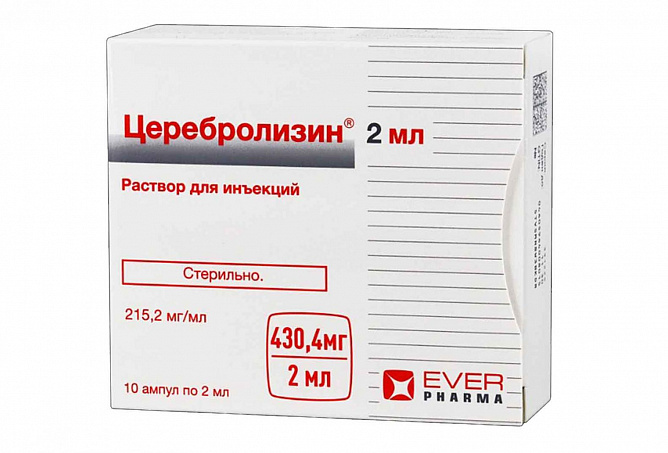 Активное вещество: 1 мл водного раствора препарата содержит 215,2 мг концентрата церебролизина (комплекс пептидов, полученных из головного мозга свиньи).