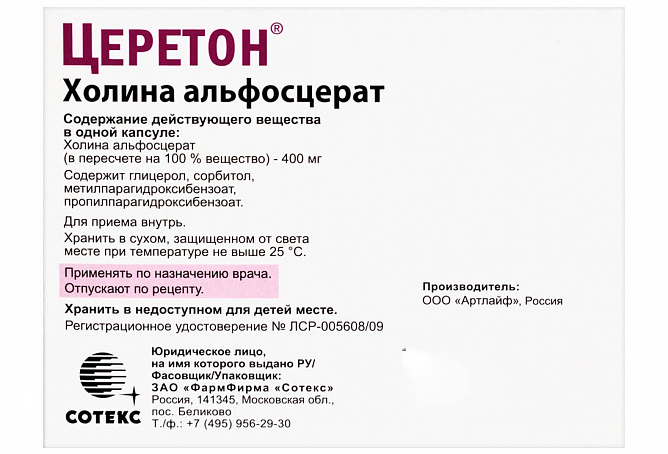 Действующее вещество: холина альфосцерат (в пересчете на 100 % вещество) ¬¬- 400 мг; вспомогательные вещества: глицерол, вода очищенная;